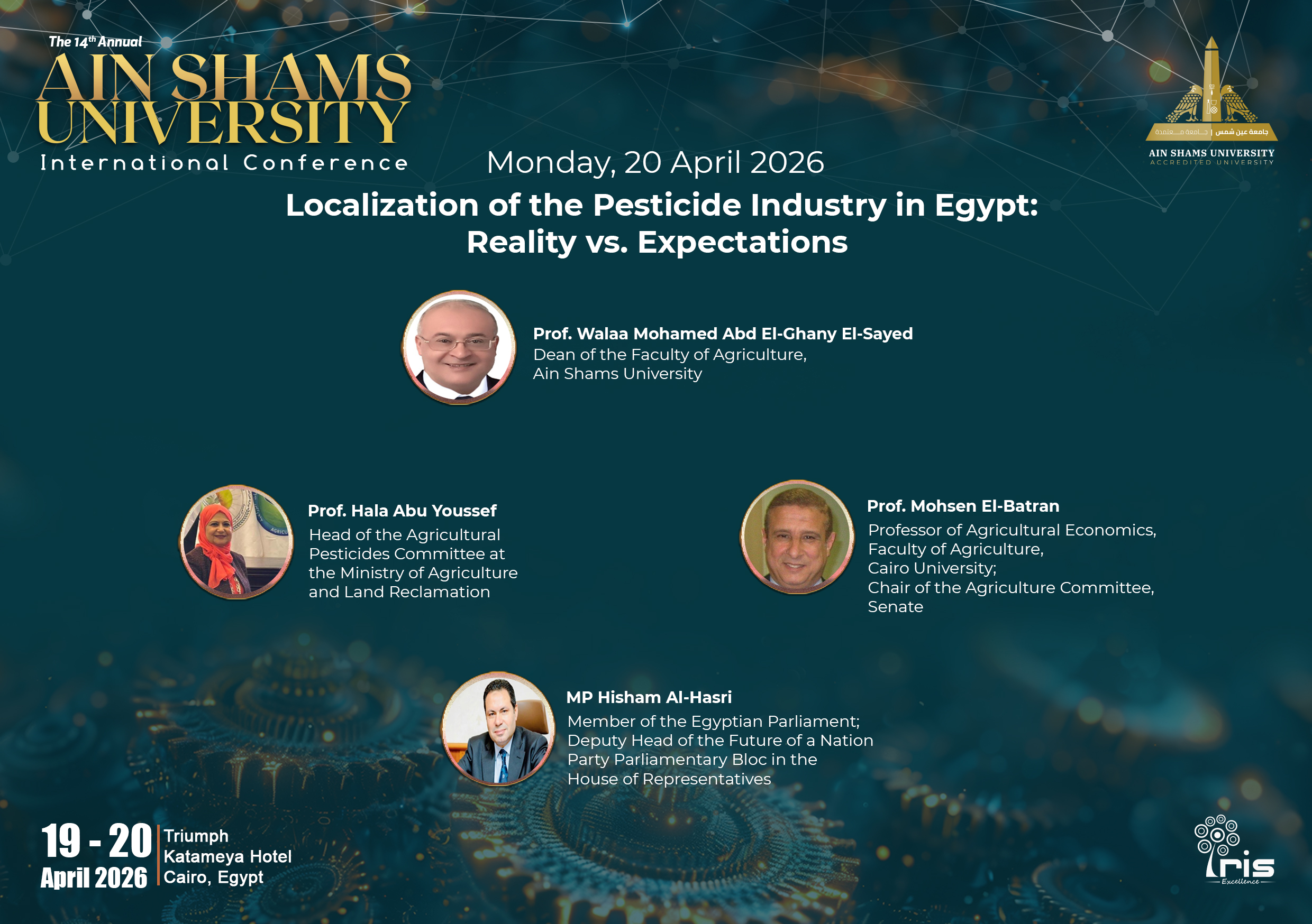 The session discusses Egypt's strategic ambition to become a regional hub for pesticide manufacturing. It highlights that Egypt currently consumes approximately 8,277 tons of active pesticide materials annually while producing only 2,849 tons domestically, and explores policy, investment, and technological pathways to close this gap. Speakers address a multi-axis localization plan involving around eight local and international entities, with factory investments of no less than 40 million EGP each, concentrated in Beheira and Alexandria. Agreements with Chinese partners to establish advanced manufacturing facilities — operated through Chinese expertise while training Egyptian workers — will be discussed alongside a strategic push toward biological pesticides as safer, environmentally friendly alternatives and the development of Egypt's own pesticide formulation mixtures.